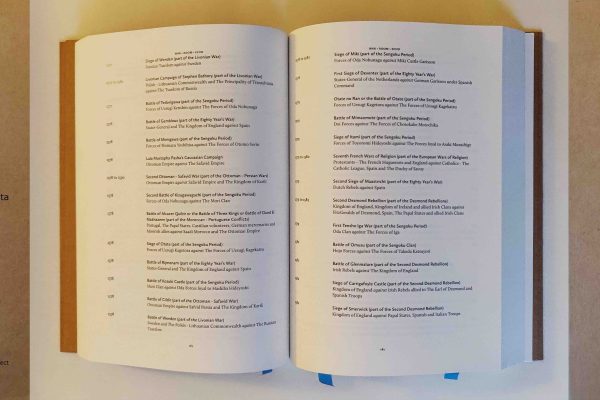 On the conditions of narrative collapse, Shumon Basar has noted that contemporary life no longer unfolds in linear stories but in curated information – beyond the swipes and scrolls of a feed, think lists, indexes, and timelines. Ali’s archives echo this logic. The War List CODEX, a part of his WAR ROOM ECHO (2014 – ) project, for instance, is a 5,525-year-long history of planetary conflict – thousands of wars, rebellions, and uprisings catalogued not just as singular events but as points in a nearly continuous timeline. There are only a handful of years without conflict, and tracking this perennial feature of civilisation has also changed the way this project has developed. With his training as a painter, Ali had originally drafted this as a digital appendix to accompany a figurative mural, but it’s now developed into a life-long work-in-progress, manifesting as part installation, part web interface, and part book. It operates like a columbarium: data as mourning, archive as ghost.